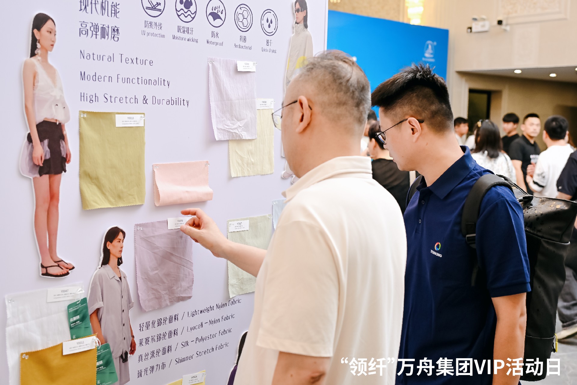 在展位现场,万舟不仅展示了成品,更通过环保技术的阐释,揭示了每一块面料背后的可持续故事。将可持续理念无缝融入面料的设计与功能中,提供了既不牺牲美学与穿着体验,又符合严苛环保标准的优质选择。